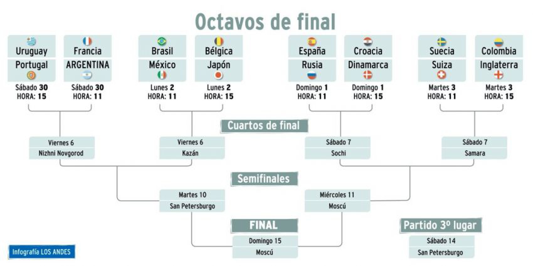 Con el cierre de esta última jornada, ya se conocen los cruces de Octavos de final de este Mundial de Rusia.