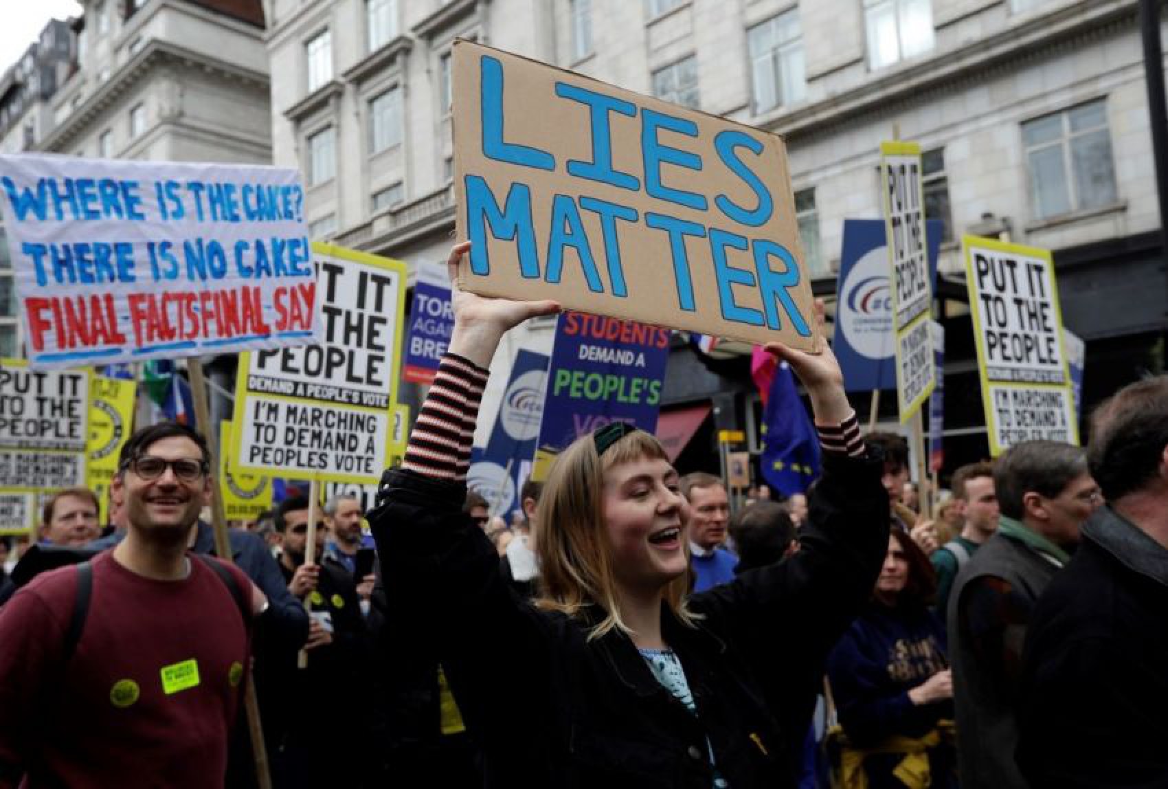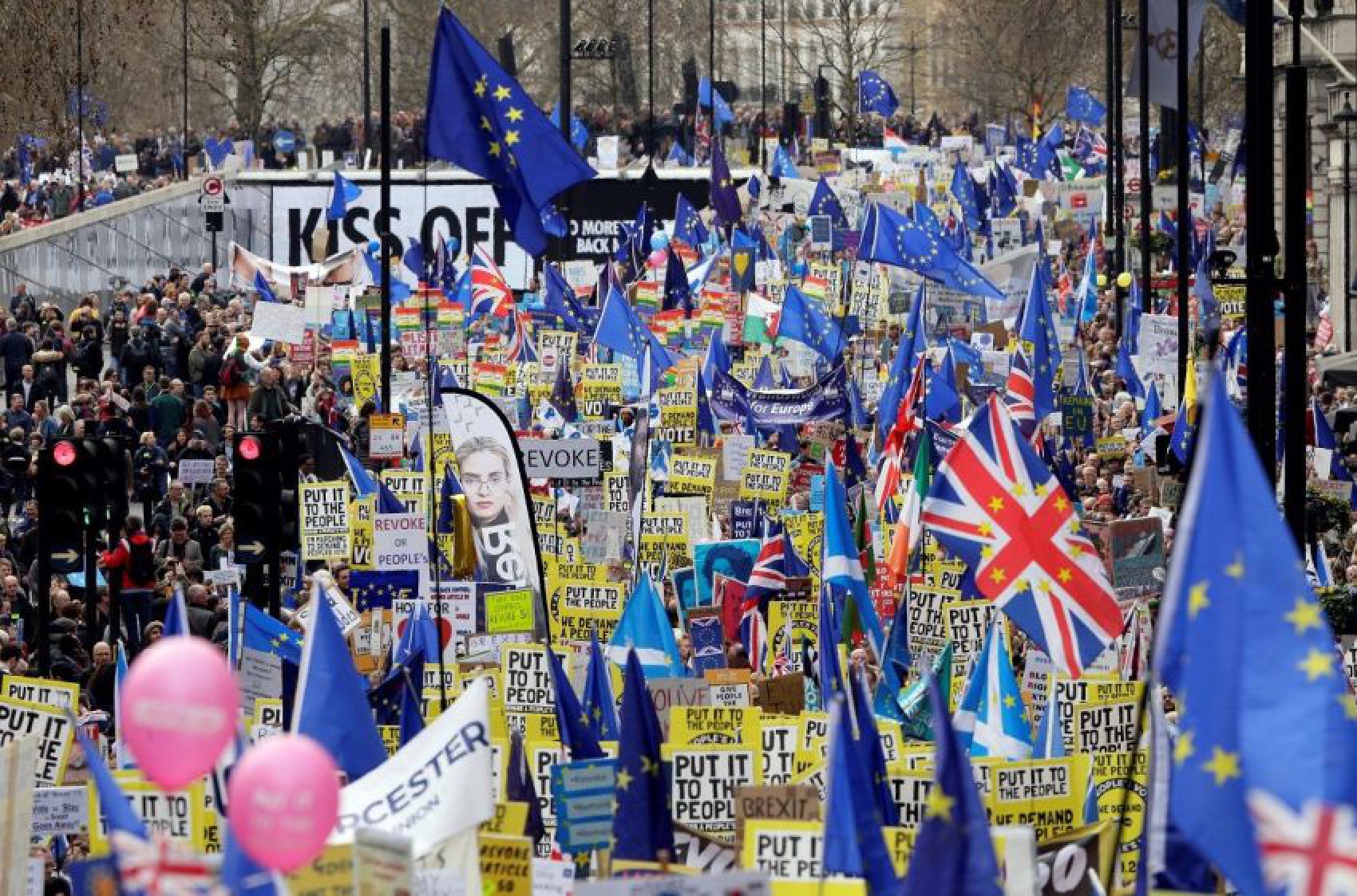 Los manifestantes reclamaron un segundo referéndum, mientras que se complica el mandato de la primera ministra Theresa May.