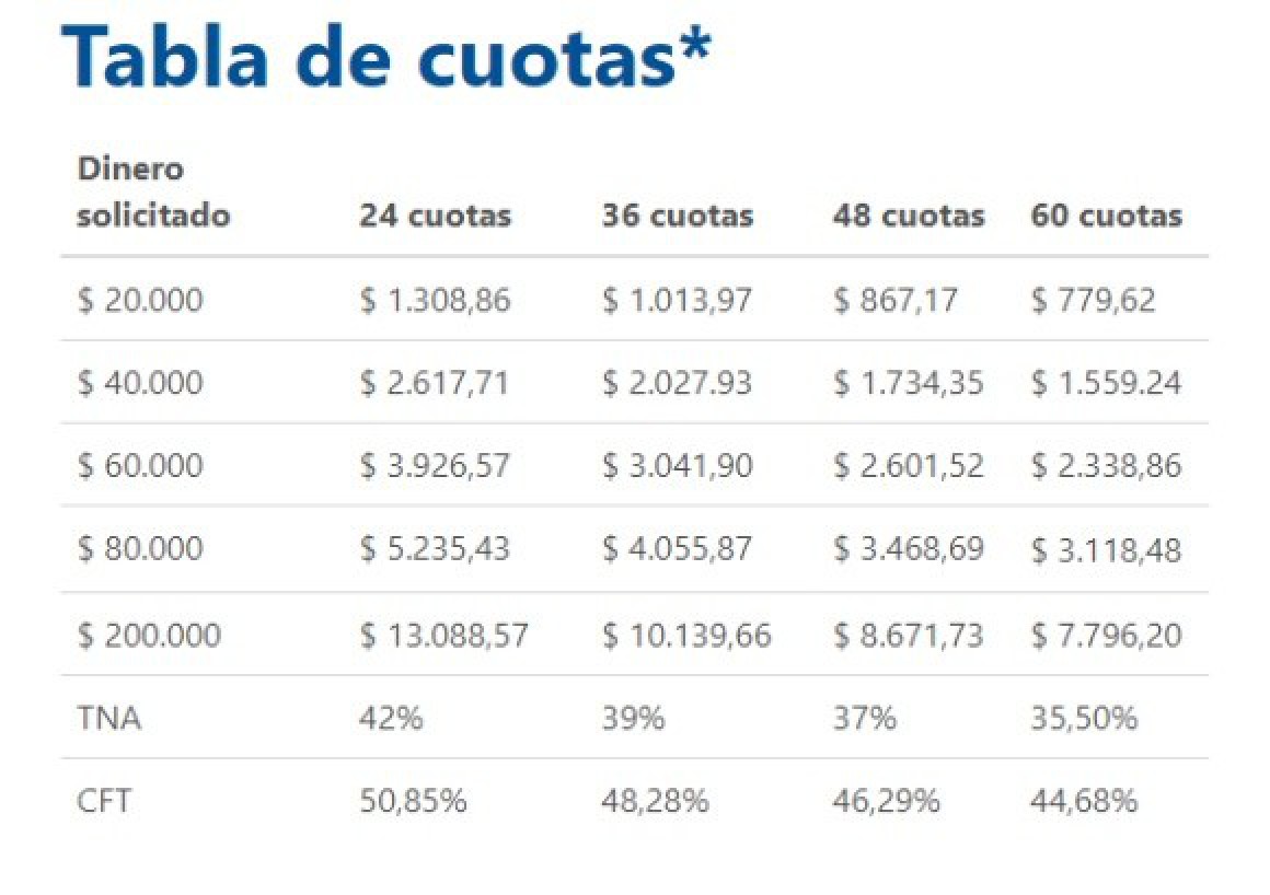 Sin embargo, en ningún caso los créditos pueden superar el 30% del haber del jubilado, lo que implica que los jubilados que cobran el haber mínimo de $12.937,22 pueden afrontar una cuota de hasta $3.980,16, y solicitar un crédito de hasta $60.000 en 24 cuotas o hasta $80.0000 si se optara por una devolución en 48 o 60 cuotas.