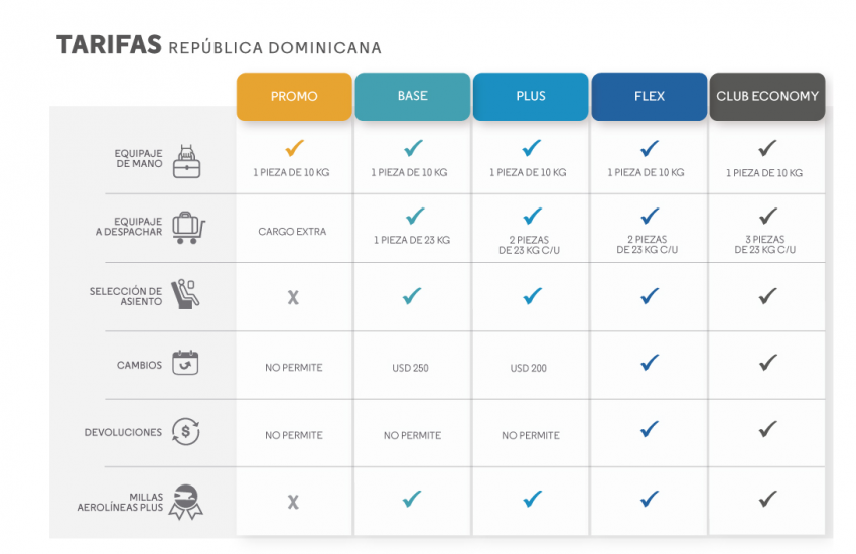 Se irá implementando de forma progresiva, empezando con los destinos Bogotá y Punta Cana. Son seis clases, desde económica hasta business.