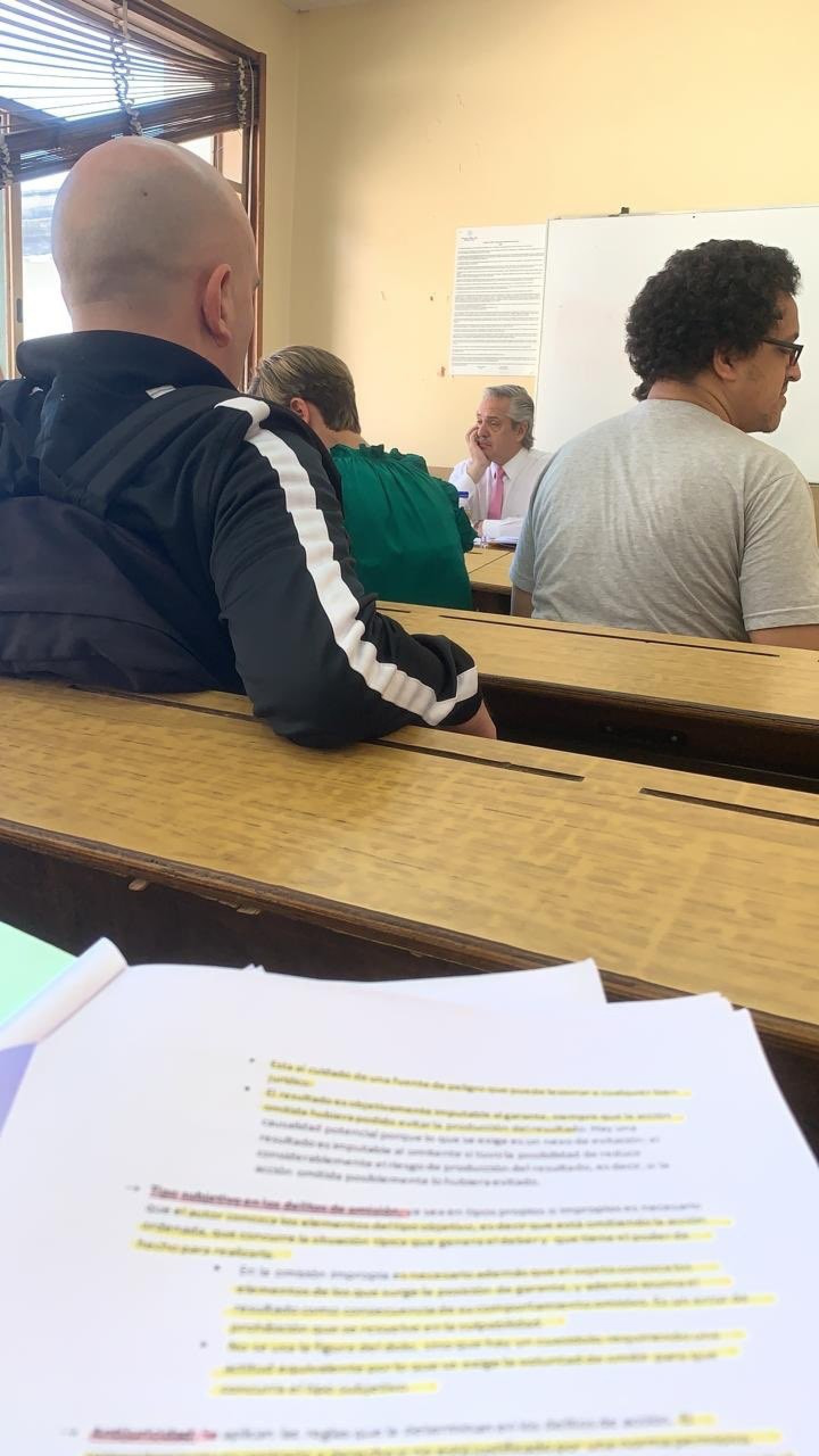 El presidente Alberto Fernández sorprendió a todos este viernes por la mañana al llegar a la Facultad de Derecho de la UBA, donde es profesor adjunto interno y dicta la materia “Teoría General del Delito y Sistema de la Pena” en el Ciclo Profesional Orientado. Fue a tomar examen a sus alumnos.