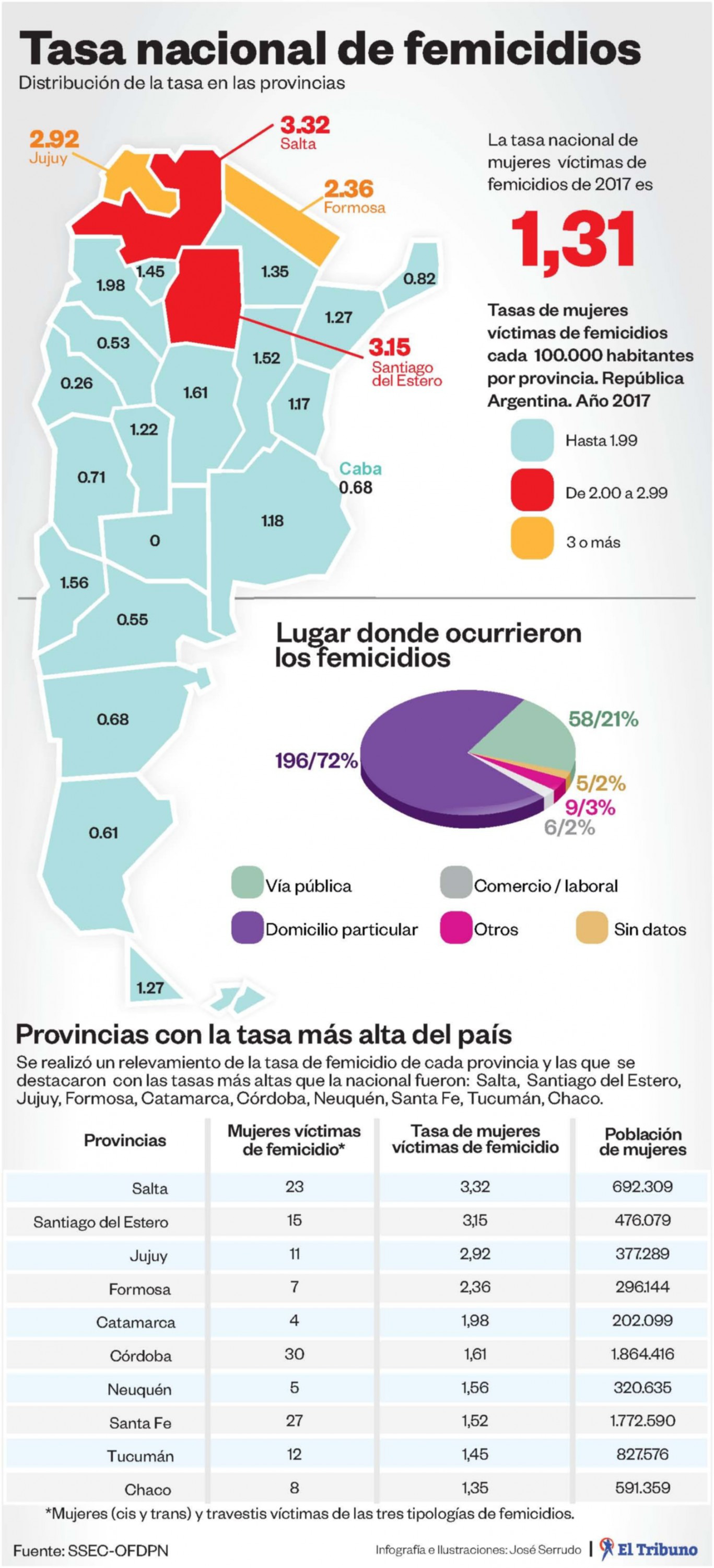 Salta registró la tasa más alta de femicidios a nivel país durante 2017, según el primer informe de estadísticas oficial sobre la problemática, elaborado por el Ministerio de Seguridad de la Nación. Al de 2018 no lo terminaron todavía.