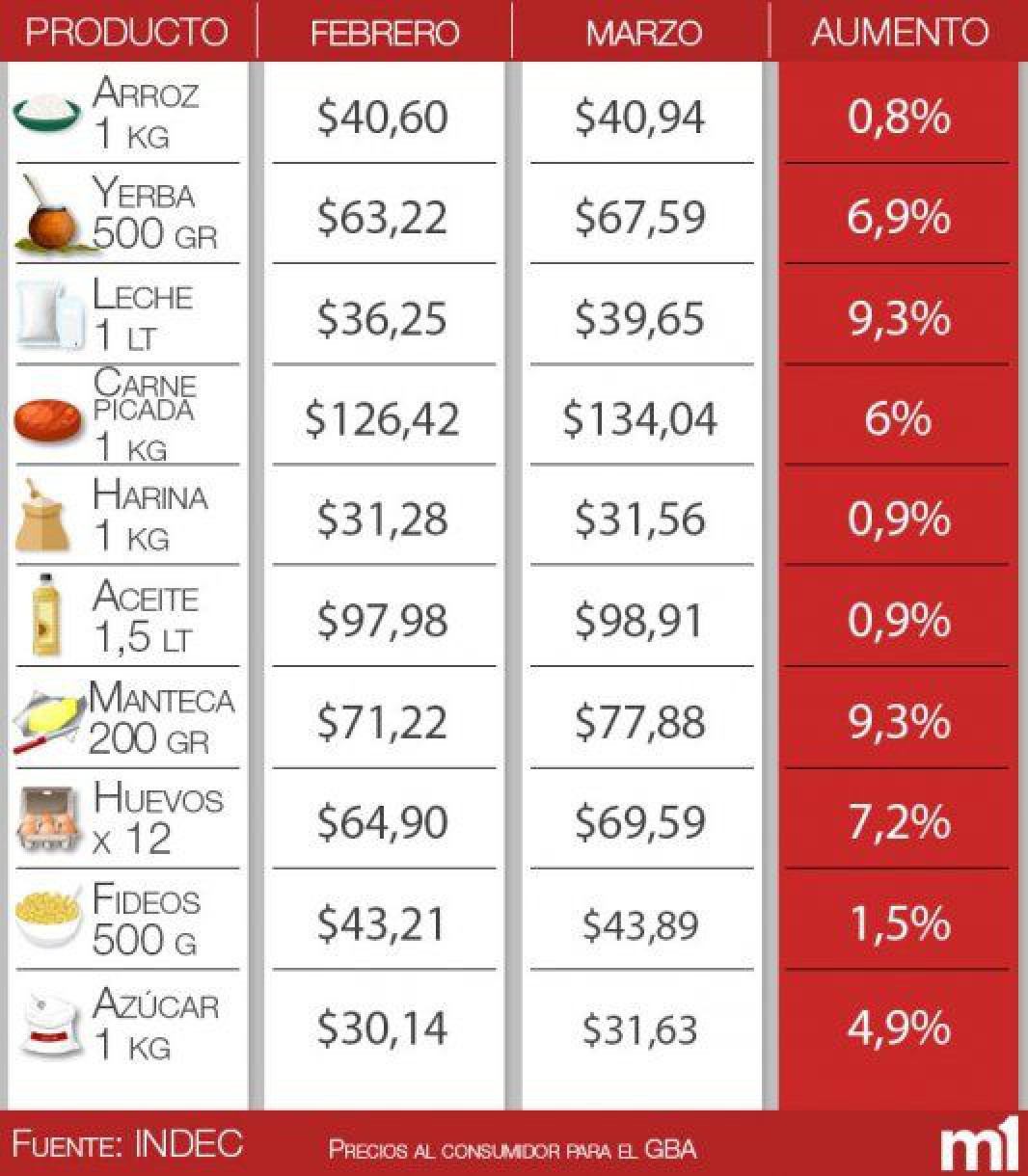 El salto de marzo refleja el impacto de aumentos entre los cuales se destacaron la cuota de los colegios, por los incrementos en los pasajes de colectivo, trenes y subterráneos, a los que se añadieron las subas de 14% en las tarifas de electricidad y del 10% en telefonía móvil.