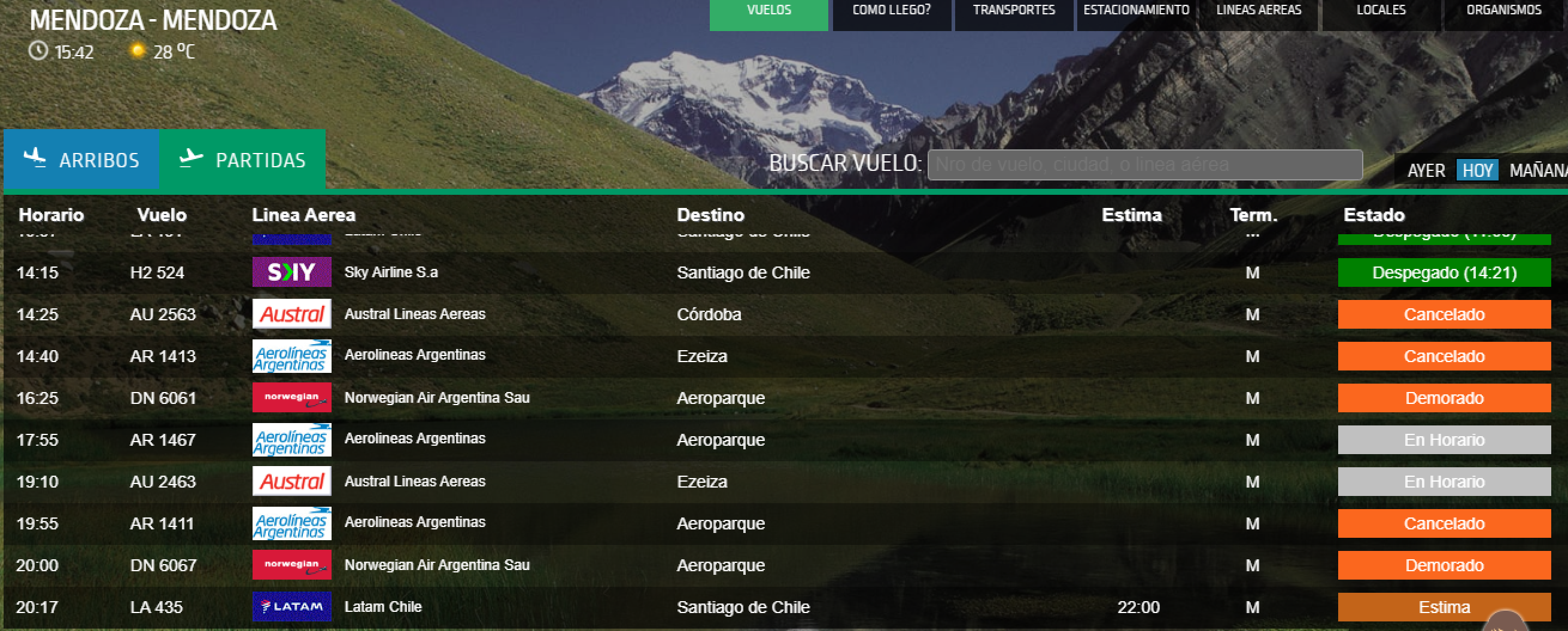 Esta situación afectó a la actividad del aeropuerto El Plumerillo de Mendoza, por lo que se cancelaron seis vuelos y hay dos demorados.