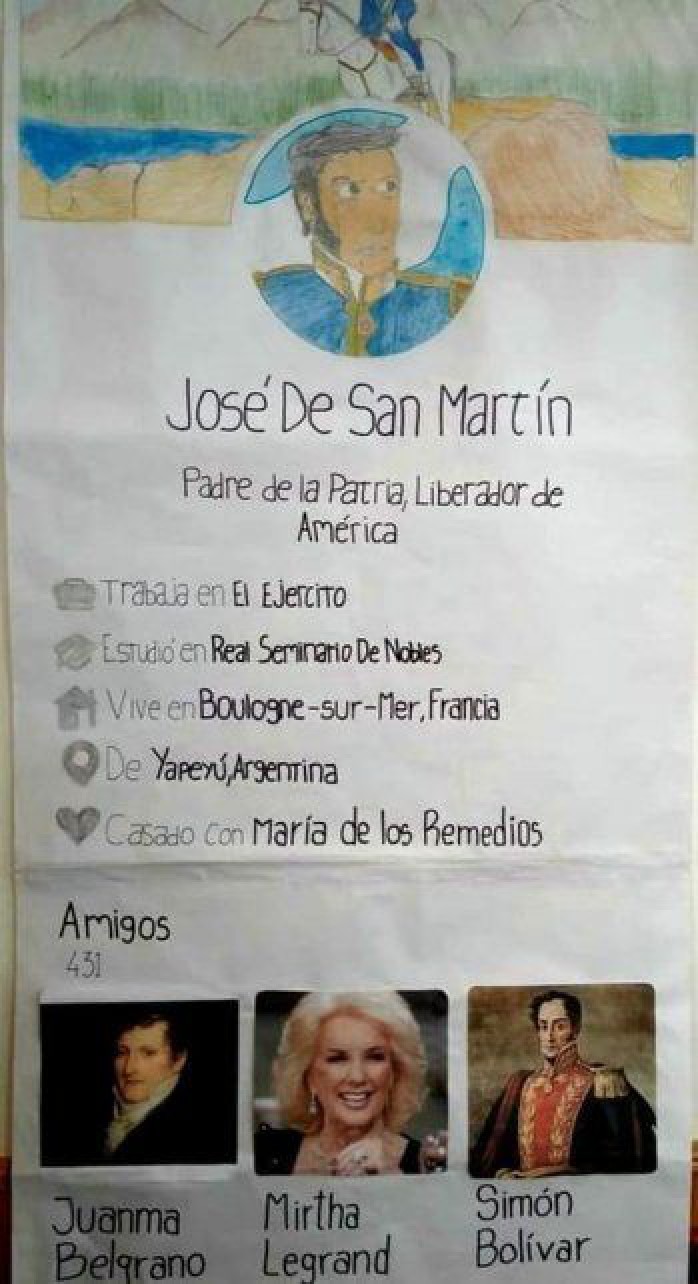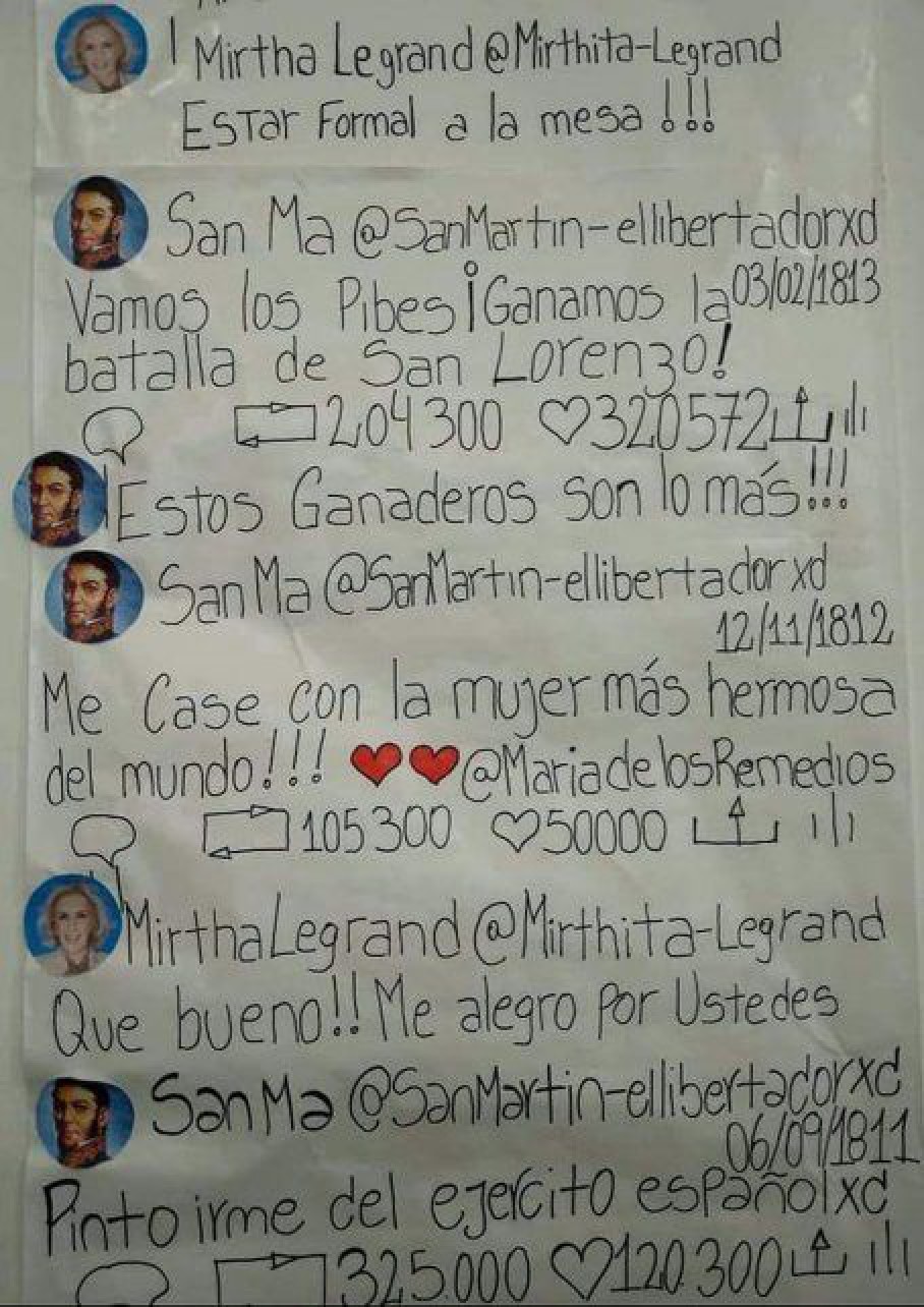 Alumnos de una escuela neuquina crearon un perfil de Twitter a San Martín y se convirtió en furor en las redes