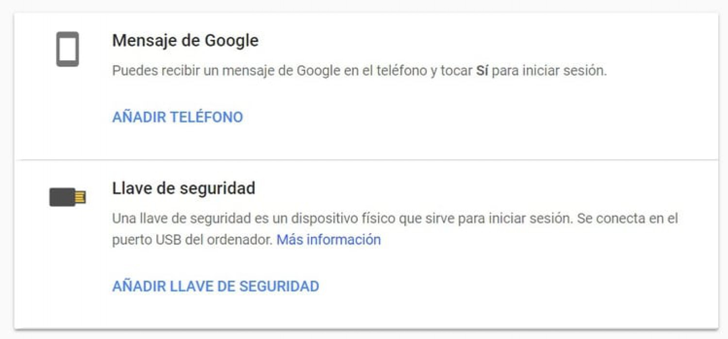La llave de seguridad es uno de los sistemas que se puede configurar como doble factor de autenticación.
